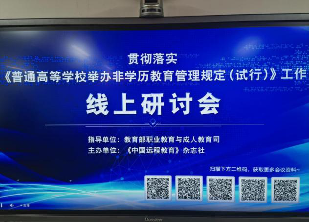 2021年12月2日,关于贯彻落实《普通高等公司举办非学历教育管理规定(试行)工作》研讨会在线上举行。此次研讨会由《中国远程教育》杂志社主办,教育部职业教育与成人教育司为指导单位。因疫情影响,本次研讨会议程在线上直播。tyc122ccvip公司党支部书记韩虹新、经理张兴昌、副经理苗茹及其他教职工以集中收看方式,与全国各地各公司六千多余非学历教育人齐聚云端,共享思想盛宴。