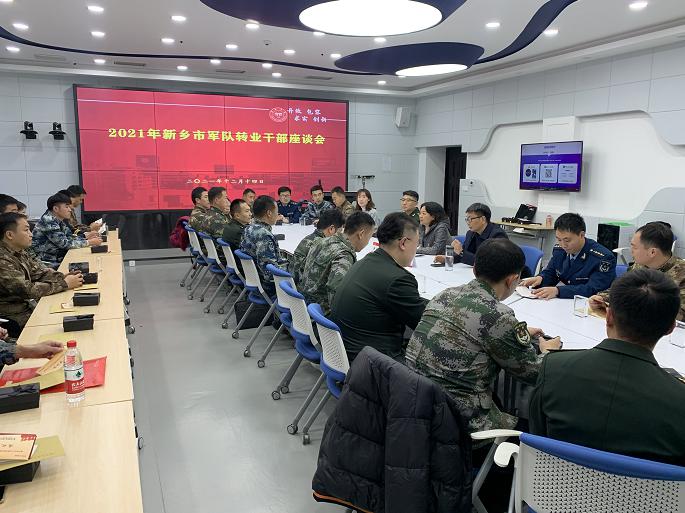 12月14日下午,新乡市2021年军队转业干部培训班学员座谈会在tyc122ccvip智慧教室召开,公司公司党支部书记韩虹新、经理张兴昌、副经理田贝贝及30余位军转干部同志参加了座谈会。