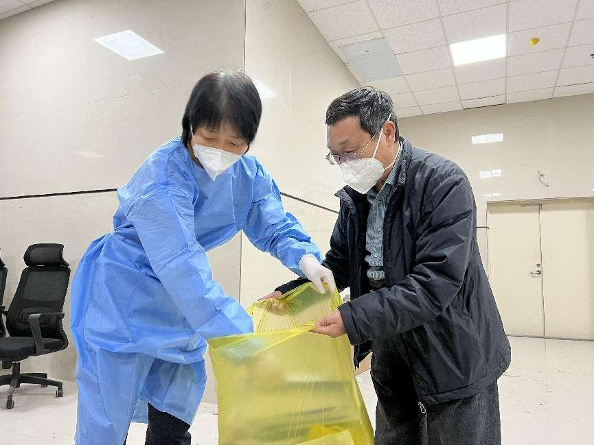 坚守岗位,任劳任怨,“疫”无反顾做好保障工作。面对复杂的疫情、繁重的准备工作,公司培训科副科长李舒楠、教师戈新杰、张孝梅不畏辛苦、团结协作、迎难而上,扛起了宣传报道及每天全校各核酸检测点的采样、防护物资分发的工作,奔波于全校各个核酸检测点,记录战疫事迹,做好全媒体宣传。“防护服、防护面罩、N95口罩、头套、手套……这个齐了!”“采样码、封箱码都分好了吗?”“这个物资包还少4个面罩!”每天弯腰工作、细心核实直至当天核酸检测工作结束,却没有任何怨言,以高度的责任感和大局意识,舍小家顾大家,把师生健康安全放在第一位,在这场没有硝烟的战场上充分展现了“继教人”的担当。