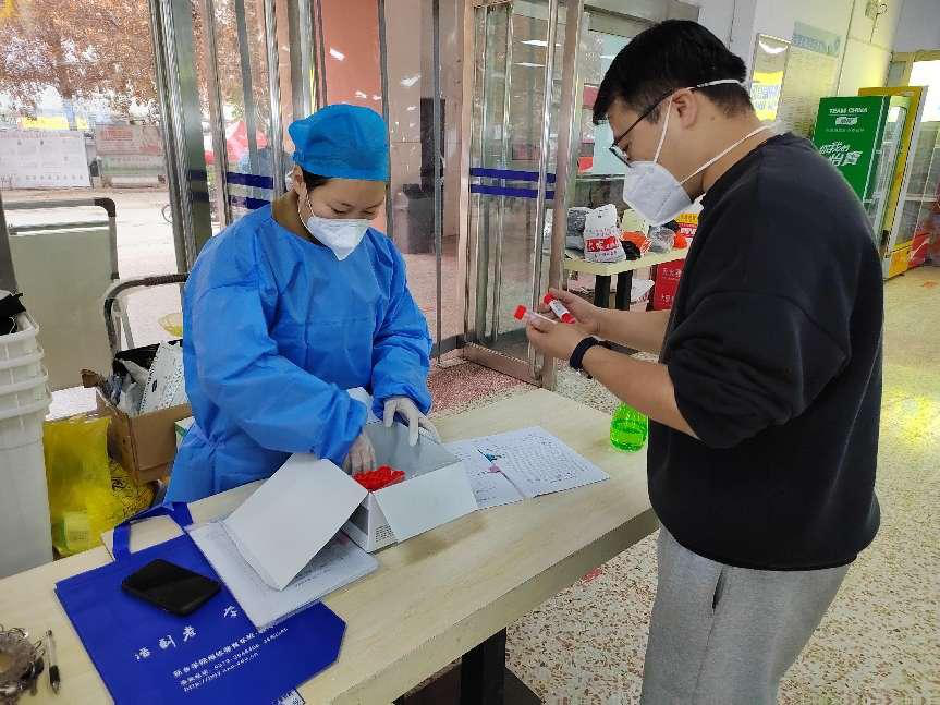 志愿服务冲锋在前,“疫”不容辞甘当抗疫排头兵。公司党员教师李尚洁、李玲欢在得知公司采样志愿者人员不足的情况下,主动请缨,服从安排,遵照要求,迅速进入状态,到东生活区宿舍采样点投入到采样、扫码的工作当中,每次采样人数超千人。她们经常在完成自己的志愿工作后,总是哪里需要就冲向哪里,帮助其他核酸检测组进行采样、扫码工作,直至全天工作结束。问到苦和累,她们总是说“为师生服务我们自觉自愿,任何困难都能克服,只想努力站好每一班岗。”