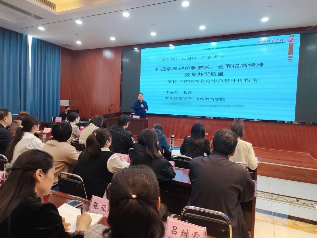 本次研修学习邀请了郑州师范公司教授李玉向、周口扶沟县特殊教育公司副董事长张杰、山东烟台市特殊教育公司刘秋芳等特殊教育一线专家教师进行授课。培训围绕办学质量评价、教师科研素养提升、孤独症儿童有效教学、特殊儿童诊断与评估等主题进行。