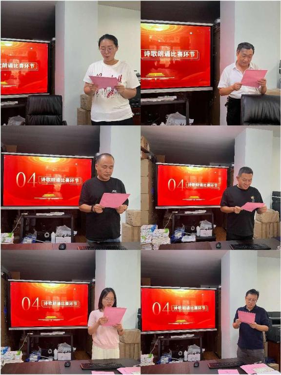 活动在雄壮的国歌声中拉开序幕。全体教职工面向鲜艳的五星红旗,满怀激情地奏唱国歌。在歌声中,表达对祖国的无限热爱与崇高敬意。随后,教师代表以诗词朗诵的方式向祖国献礼,大家用真挚的情感和激昂的声音,抒发对祖国深深的热爱。互动环节中,老师们一起参与到趣味猜字游戏中,在轻松、欢快的氛围中感受着浓浓的节日氛围。