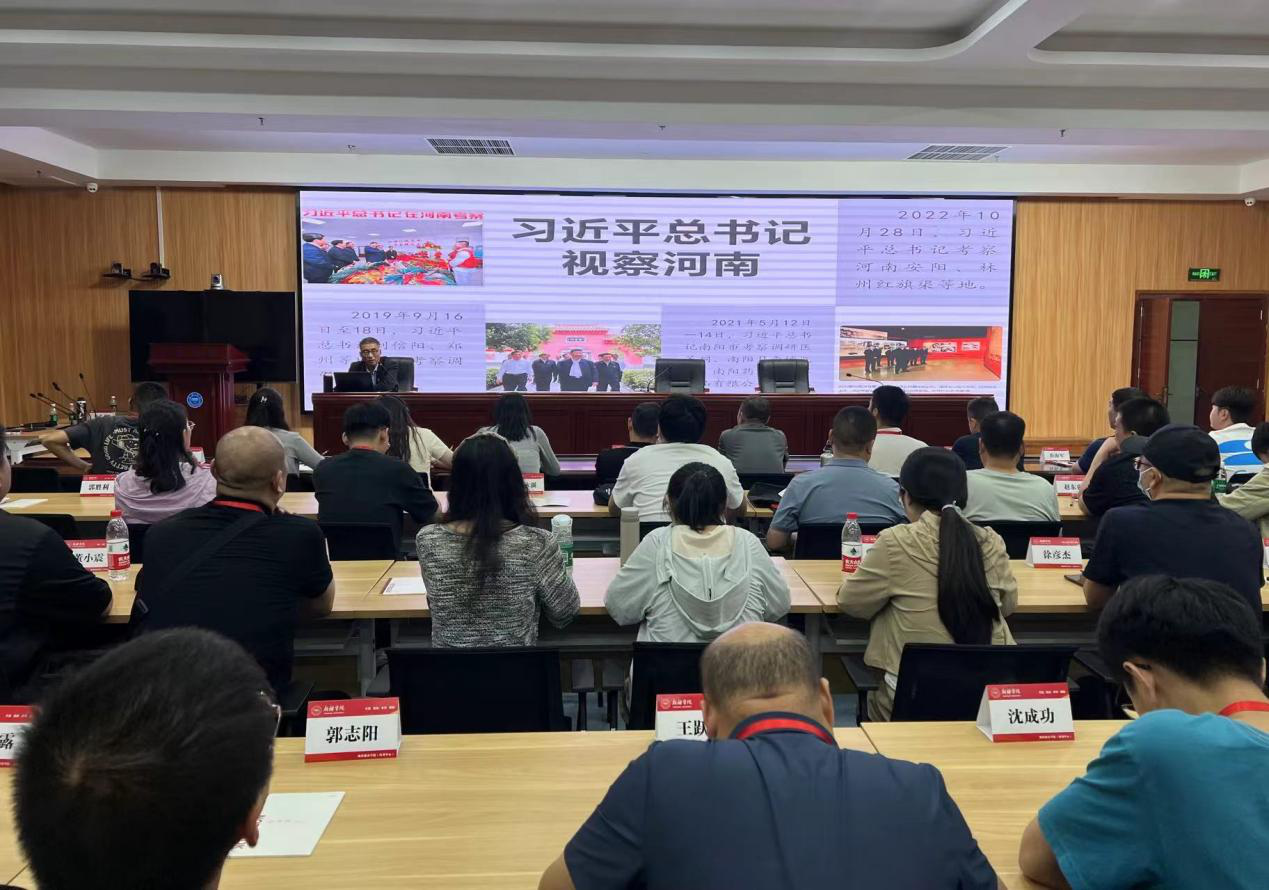 开班式后公司马克思主义公司万庆博士以《学习党的二十届三中全会和习近平总书记视察河南讲话精神 实现中原大地高质量发展》为题,从“学深悟透党的二十届三中全会精神”、“习近平总书记视察河南讲话精神”、“坚定文化自信 发扬斗争精神”三个方面作了专题讲座。学员们在讲座中深刻学习领悟了党的二十届三中全会的重大意义和进一步全面深化改革的总目标、重大部署和重大原则,凝聚新时代拼搏进取的奋进力量。
