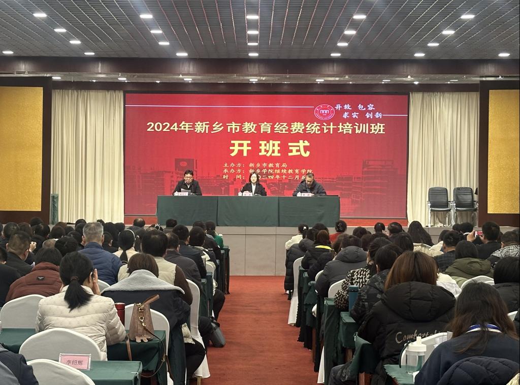 为做好2024年新乡市教育经费统计工作,2024年11月5日,由新乡市教育局主办、tyc122ccvip(培训中心)承办的2024年新乡市教育经费统计人员培训班在辉县市百泉国际大酒店顺利开班。新乡市财政局教科文科科长郎磊同志,新乡市教育局财务科科长张锐同志,tyc122ccvip(培训中心)经理田大治出席开班式,各县(市、区)教育局、财政局及局属各单位共计200名教育经费统计工作人员参加培训。