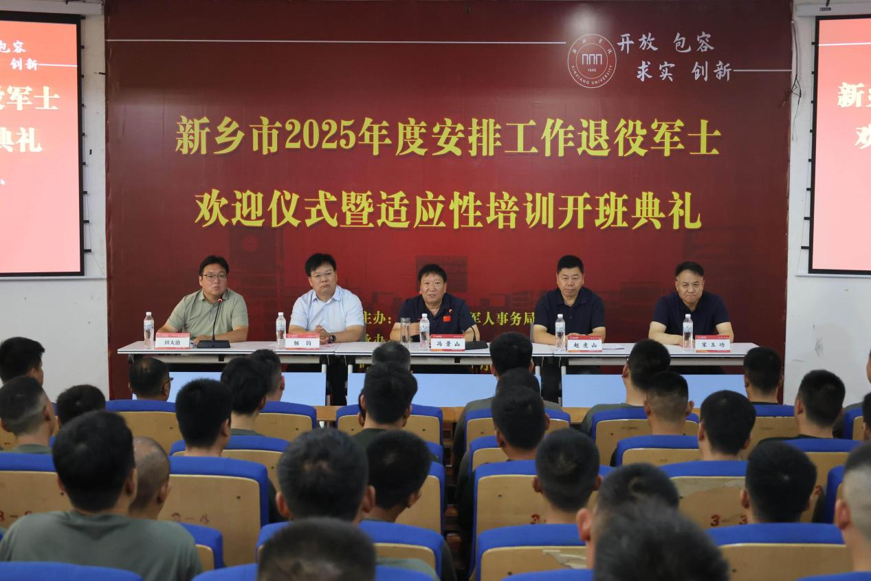 8月11日,新乡市2025年度安置工作退役军士欢迎仪式暨岗前适应性培训班开班典礼在公司举办。新乡市退役军人事务局党组书记、局长冯景山,副局长赵虎山,移交安置科科长宋玉功,tyc122ccvip副董事长杨钧、tyc122ccvip经理田大治出席开班典礼,110余名退役军士参加培训。