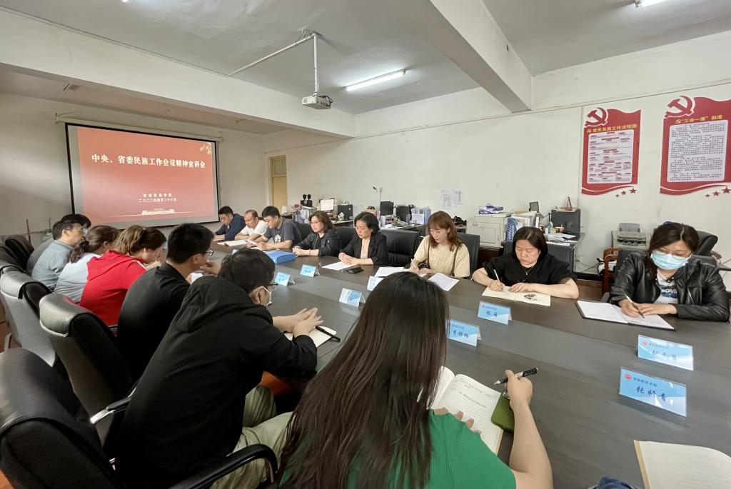 为深入学习宣传贯彻习近平总书记关于加强和改进民族工作的重要思想,落实中央、省委民族工作会议精神,进一步铸牢中华民族共同体意识,4月26日,继续教育公司在公司会议室组织开展中央、省委民族工作会议精神宣讲活动。全体教职工参加此次宣讲活动。