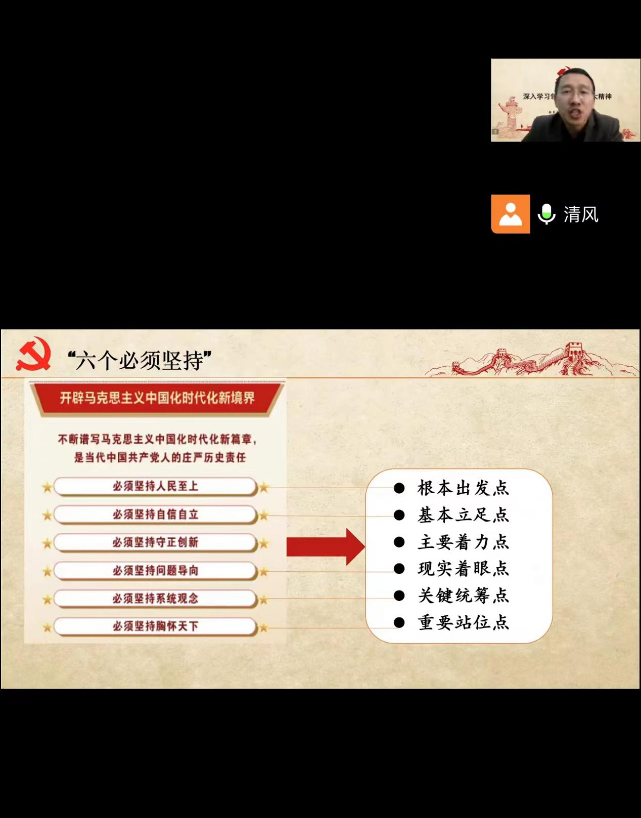 张栋京围绕召开党的二十大会议的重要意义,党的二十大精神重要的理论指导意义,过去五年的工作和新时代十年的伟大变革,中国共产党为什么能、中国特色社会主义为什么好、中国化时代化的马克思主义为什么行等八个方面对党的二十大精神进行了全面系统、形象生动的宣讲,特别是对开辟马克思主义中国化时代化新境界进行了重点深刻的解读,深刻阐述了党的理论创新体系形成的思想脉络和重大理论观点、成果,深刻阐述了习近平新时代中国特色社会主义思想的世界观和方法论,深刻阐述了“两个确立”对新时代党和国家事业发展、对推进中华民族伟大复兴历史进程的决定性意义。报告提出,要把“五个牢牢把握”作为学习贯彻落实党的二十大精神的重要思想指引:一是牢牢把握过去五年工作和新时代十年伟大变革的重大意义,深刻领悟“两个确立”的决定性意义。二是牢牢把握习近平新时代中国特色社会主义思想的世界观和方法论,深刻理解“两个结合”,深入把握“六个必须坚持”。三是牢牢把握以中国式现代化推进中华民族伟大复兴的使命任务,深刻理解中国式现代化的本质要求和重大原则,全面学习中国式现代化的战略举措。四是牢牢把握以伟大自我革命引领伟大社会革命的重要要求。五是牢牢把握团结奋斗的时代要求。报告内容丰富、深入浅出,生动形象地阐述了党的二十大报告的精神实质和核心要义,具有很强的吸引力和感染力。