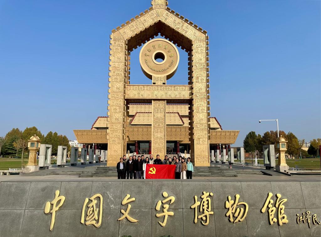 在中国文字博物馆,大家跟随讲解员,详细了解了从贾湖遗址出土的原始刻画符号到甲骨文、金文、简帛文字、篆书、隶书、楷书,一直到现代社会的信息时代的中国文字的构形特征和演化历程,通过阅读一段段珍贵的文字、欣赏一件件精美的文物、聆听一个个悠久的历史故事,沉浸式参观感受千年文字魅力,深刻理解“一片甲骨惊天下,千年汉字贯古今”的历史积淀,实地感悟到了文字传播者们艰苦创业、顽强拼搏的奋进力量,更深刻地感受到深厚的人文历史文化底蕴和特色文化资源。全体党员从甲骨文、青铜器、古车马等一件件文物中探寻中华文明的起源,勾勒文明发展脉络,进一步增强文化自信和民族自豪感,感受华夏文明的魅力和力量,深刻理解“两个结合”的重大意义,坚定历史自信、文化自信,更加自觉传承弘扬中华优秀传统文化。
