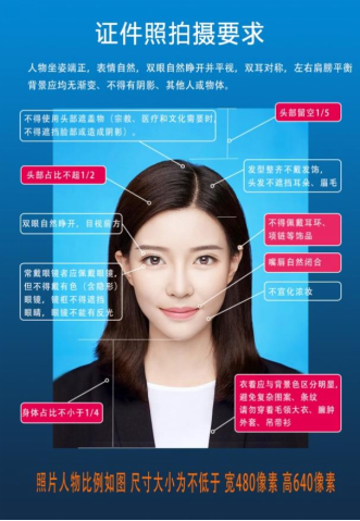 4.采集时一定真实表达员工本人相貌,请勿画浓妆和美颜,尽量使用手机自带相机拍摄或到照相馆照相后在线提交,禁止对图像整体或局部进行镜像、旋转等变换操作,不得对人像特征进行修饰处理,不得添加边框、文字、装饰图案等其他内。图像信息须正面免冠照,禁穿蓝色衣服(背景为自动生成天蓝色),具体要求见下图。